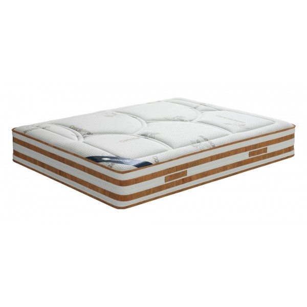 Matéria-prima de excelência, que torna o colchão antialérgico, antiestático e resistente. As faixas laterais em cortiça tornam único o design e a inovação, sempre a pensar na preocupação ecológica.